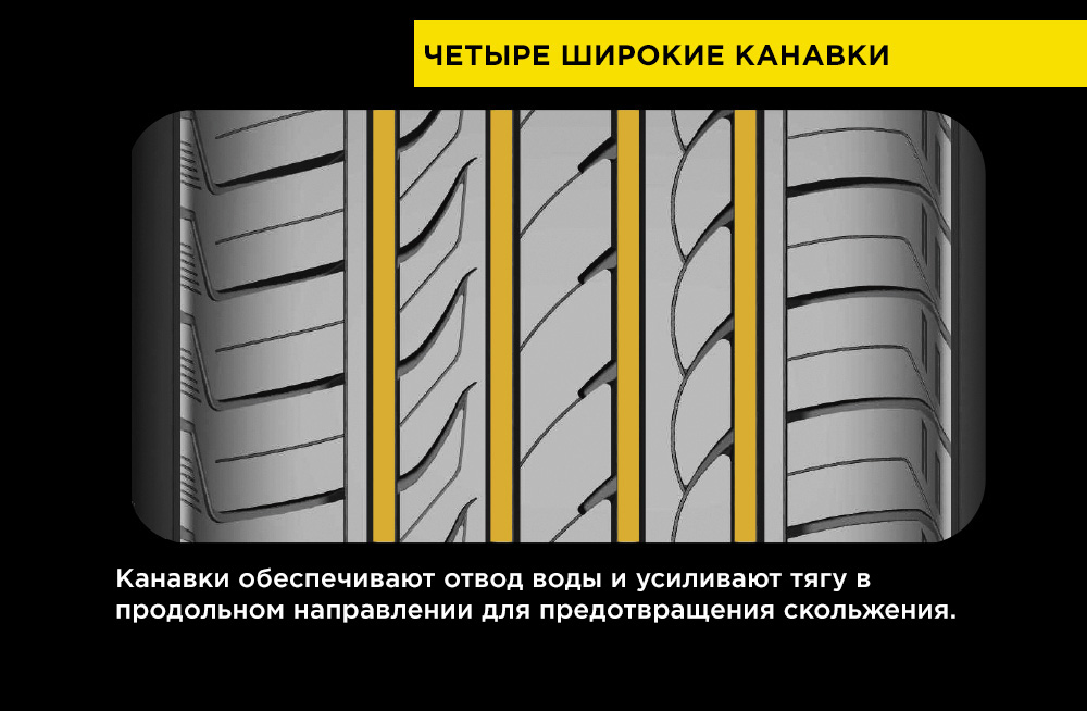 Для снижения уровня колесного шума на внешней стороне протектора имеются особые закрытые канавки, за счет которых сокращаются звуковые волны. Усиливают акустический комфорт 3-Д ламели плечевой зоны и оптимизированный дизайн плечевых блоков, которые также способствуют более равномерному распределению давления в зоне контакта. Таким образом достигается максимально тихое движение и оптимальный износ протектора.